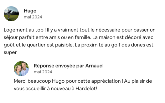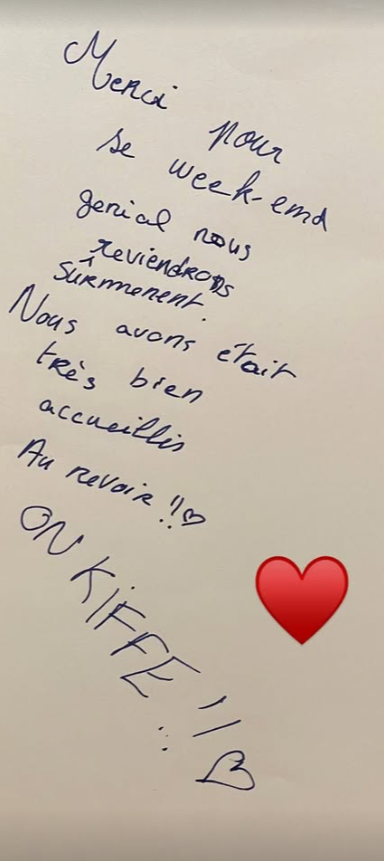 Nous adorons également recevoir des petits mots à l'issue d'un séjour :