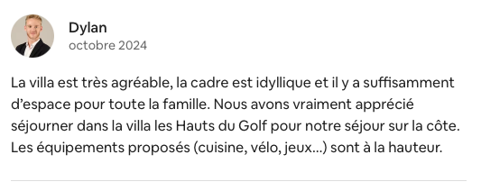La Villa Les Hauts du Golf a reçu la certification la plus haute (5 étoiles sur 5) d'Etoiles de France, le classement officiel des hébergements touristiques français - dans la catégorie Meublé de Tourisme.