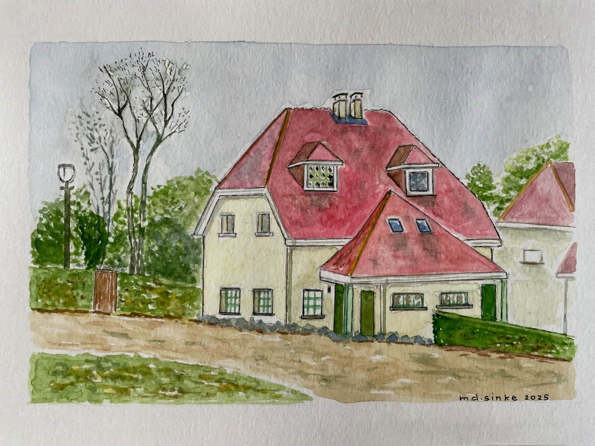 Tijdens zijn verblijf in Februari 2025 liet Marinus Sinke zich inspireren door de sfeer van de villa en maakte hij deze prachtige aquarel. 🎨💙 Een grote dank aan hem voor deze prachtige artistieke herinnering!